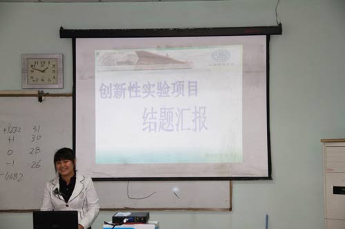 4月13日下午2点半,在3号楼2层微格教室,jbo竞博官网登录组织进行了"2012年大学生创新实验项目"的结题总结,jbo竞博官网十名学生对自己的项目进行了汇报。