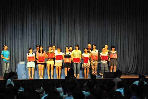 伴着欢快的乐曲,副院长芦荣胜宣读了生命学院2013届毕业生毕业证书授予名单;学院老领导、正处级调研员张有才老师宣读了"省、校级级优秀毕业生"名单;副院长王祎玲宣读了"2013届毕业生优秀毕业论文" 名单;党委副书记、学工组长吴建军宣读了"毕业生工作各类先进奖获得者"名单。学院党政领导为毕业生和获奖师生分别颁发了毕业证书及荣誉证书。