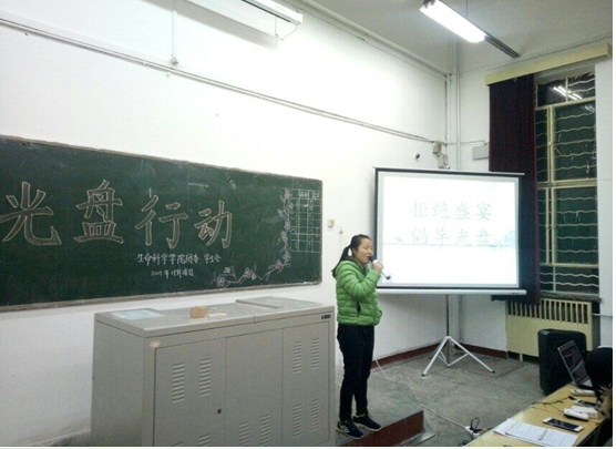 为了减少食物浪费,增强同学们爱惜粮食的意识。jbo竞博官网学生会于11月28日晚7:30在05102举办以“拒绝盛宴,倡导光盘”为主题的“光盘行动”评比。共14个小组参加此次评比,100余名观众观看了此次活动,学生会主要成员担任评委。