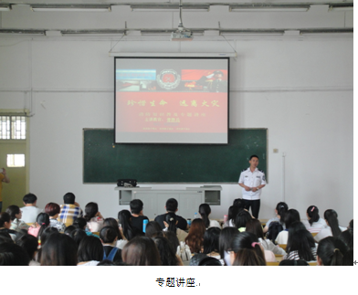上午9时整,jbo竞博官网在05102教室举办专题讲座,特邀消防教官曾胜兵主讲。校保卫处副处长王向阳、院长韩榕教授、学院实验员、部分辅导员以及140