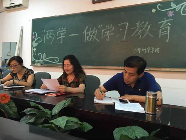会议最后,段江燕书记在总结中指出,各支部要学用结合,知行合一,将讲规矩和讲纪律与实际的教学、科研工作相结合,在行动上认真践行、形成一致意识和统一行动;要注意培养党员骨干,充分发挥教师党员的先锋模范作用,为学院和学校的发展增砖添瓦,将“两学一做”落到实处。