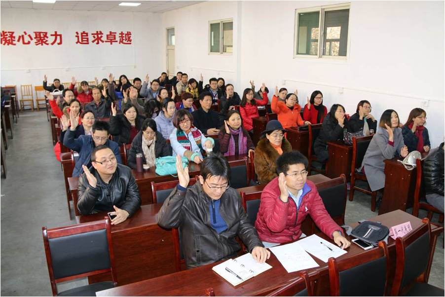 段江燕院长代表学院作了《院长工作报告》。报告全面回顾了学院2016年在教学改革、科研活动、人才培养、实验室建设等八个方面取得的成绩,同时,对学院的现状进行了深层次的剖析。段院长指出:“全院上下要以学校三项改革为契机,坚持问题导向,集思广益、群策群力,围绕主要工作改革创新、锐意进取、真抓实干”。最后,她明确提出学院在2017年的主要任务和工作思路,将分类考核作为学院改革重点,并在此基础上继续深化课堂教学改革,引进高端人才,实现科研新突破。