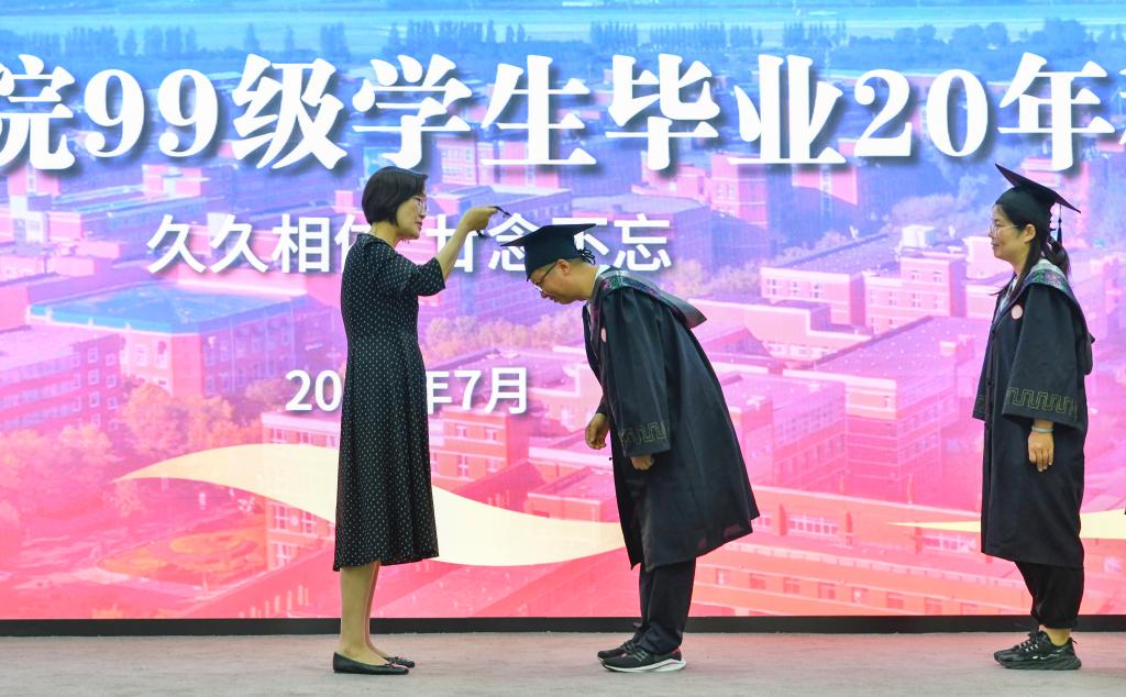 7月30日,我校jbo竞博官网登录99级校友毕业20年秩年活动在北区二号楼一层报告厅举行。校长许小红出席,为身着学士服的近百名校友一一拨穗正冠、亲切交流,一起追忆20年前的大学时光,并送上母校的祝福。副校长王云代表学校接受校友捐赠。我校原副校长闫桂琴出席活动。