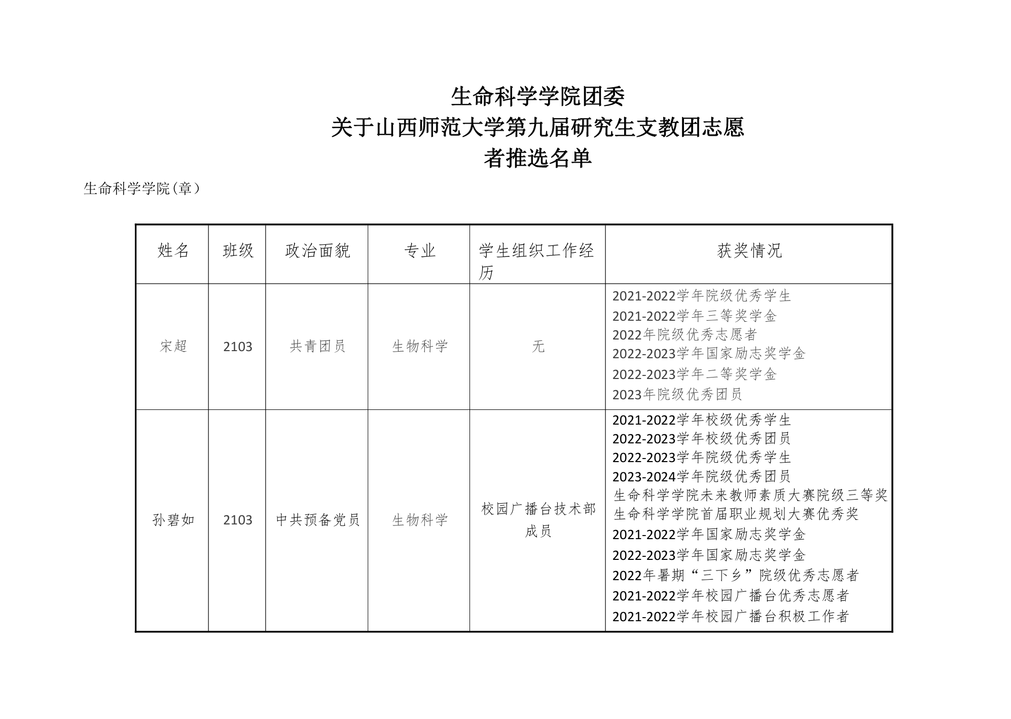 根据全国大学生志愿服务西部计划项目管理办公室《关于组建第27届中国青年志愿者研究生支教团(2025—2026年度)有关工作的通知》和《jbo竞博官网登录研究生支教团招募与管理办法(试行)》的相关要求,jbo竞博官网登录团委按照“公开招募、自愿报名、择优选拔”的原则,开展jbo竞博官网登录第九届研究生支教团志愿者的招募选拔工作。现将相关招募选拨结果进行公示,公示结果如下。